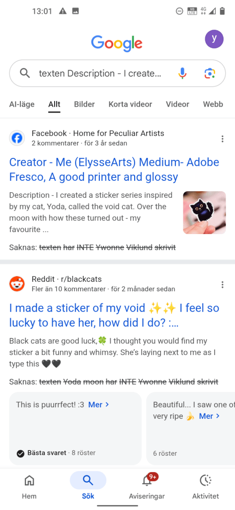 Och nu har texten hamnat under mitt namn, så att det ser ut som jag har skrivit om katten Yoda och att det är min inspiration. Så långt ifrån sanningen och mig som skrivande person. Jag har iaf. fått dit att jag inte skrivit texten., men vill ju få in det vid mitt namn också och helst att texten inte alls syns vid mitt namn.