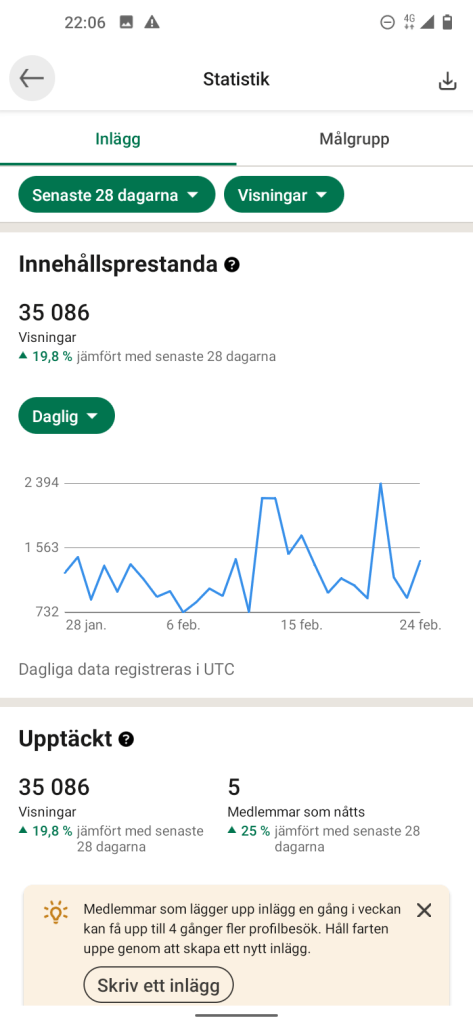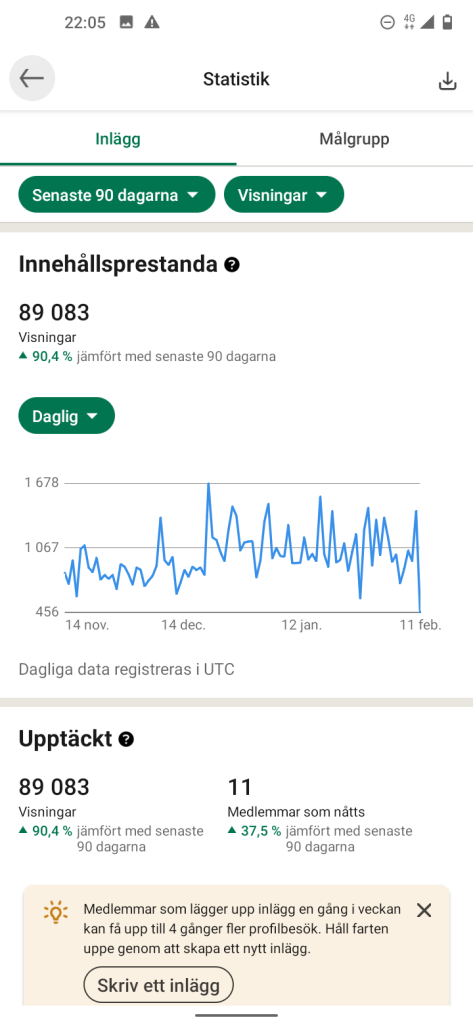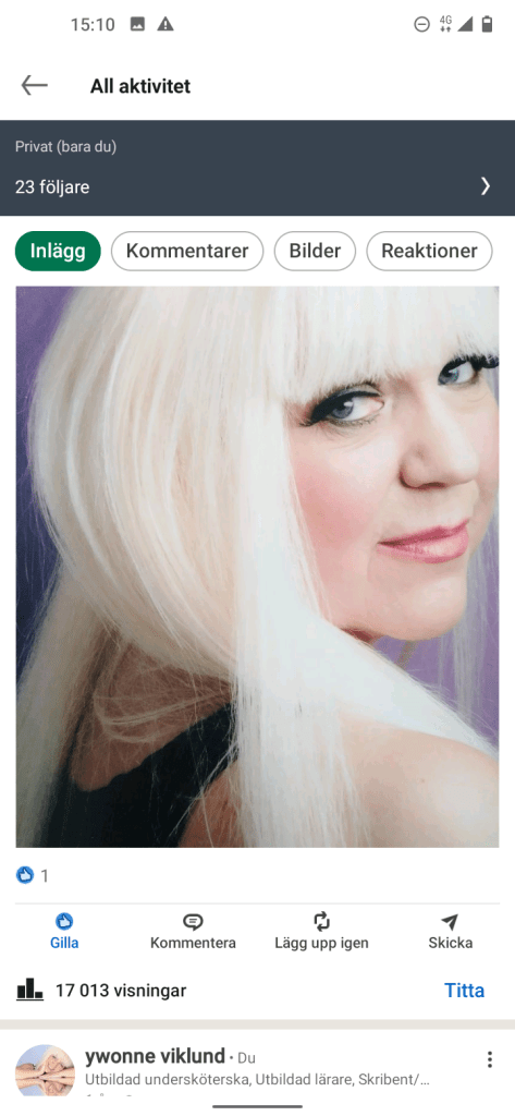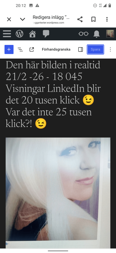 Fantastiskt!! Idag är bilden uppe i så många Visningar 😊 och på det lite Statistik om du nu inte har tittat på mina uppdateringar. Ps, mina 8 inlägg är idag uppe i 96 007 Tusen Visningar ☀️ jag häpnar över det fast å andra sidan så är det skrivet av mig på ett sätt som kanske tilltalar dig med några stycken till 😉. Ja och jag vet nästa inlägg är på gång.