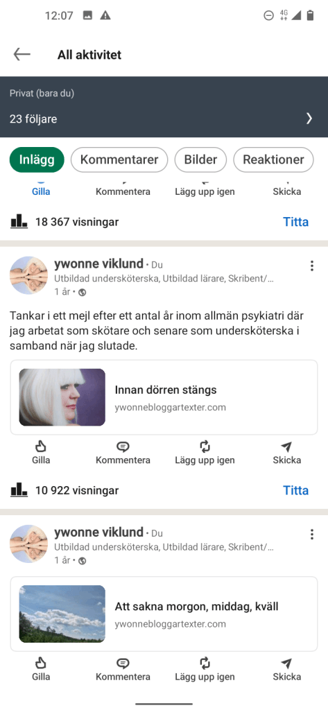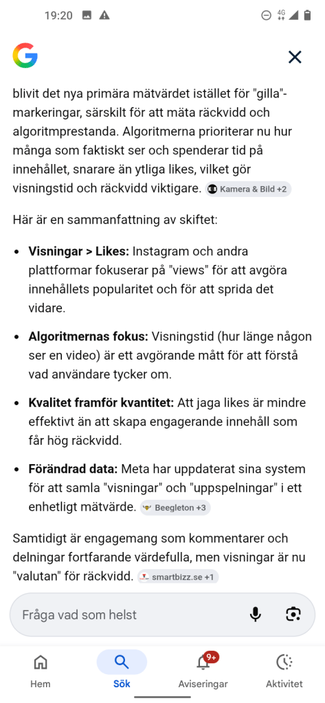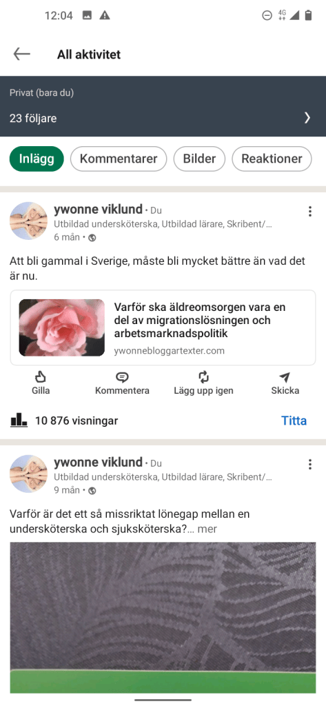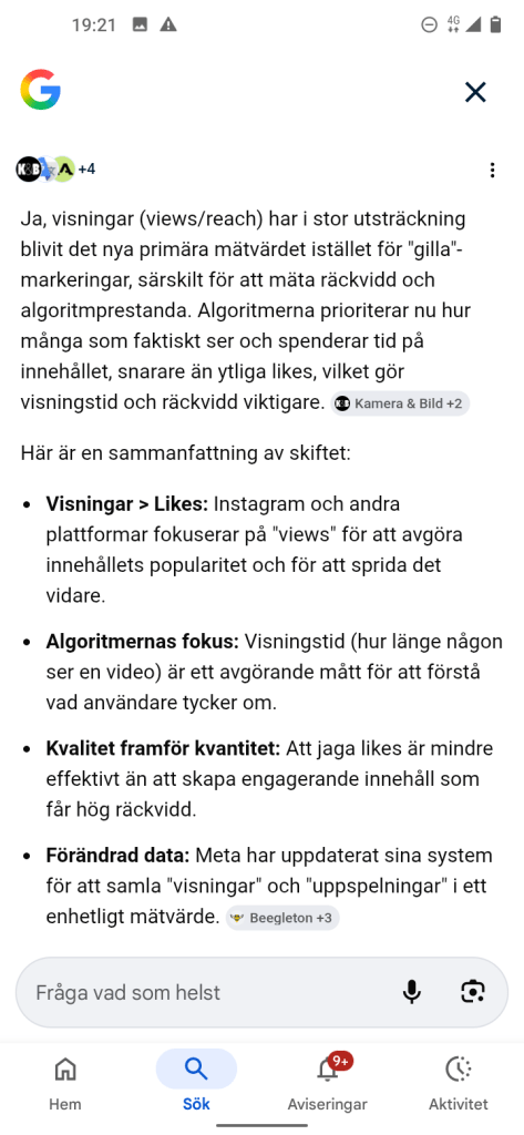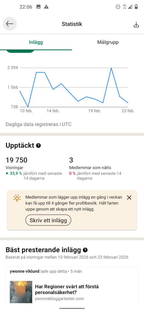 Känns betryggande att läsa, att det nya är Visningar som mätvärden istället för likes, så med andra ord så kan jag fortsätta med mina inlägg, som jag hoppas att när du läser, uppfattar att det framgår en liten blandning av kreativitet och mina åsikter av klarspråk i mitt skrivande av olika inlägg, vill ha texten mer levande och berättande, men med ett viktigt innehåll.