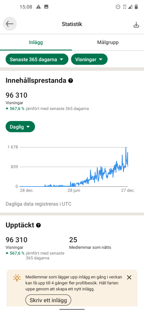 Det går ju så sakta framåt 😊 ungefär samma tidsperiod som totalt antal Visningar – än så länge 😉