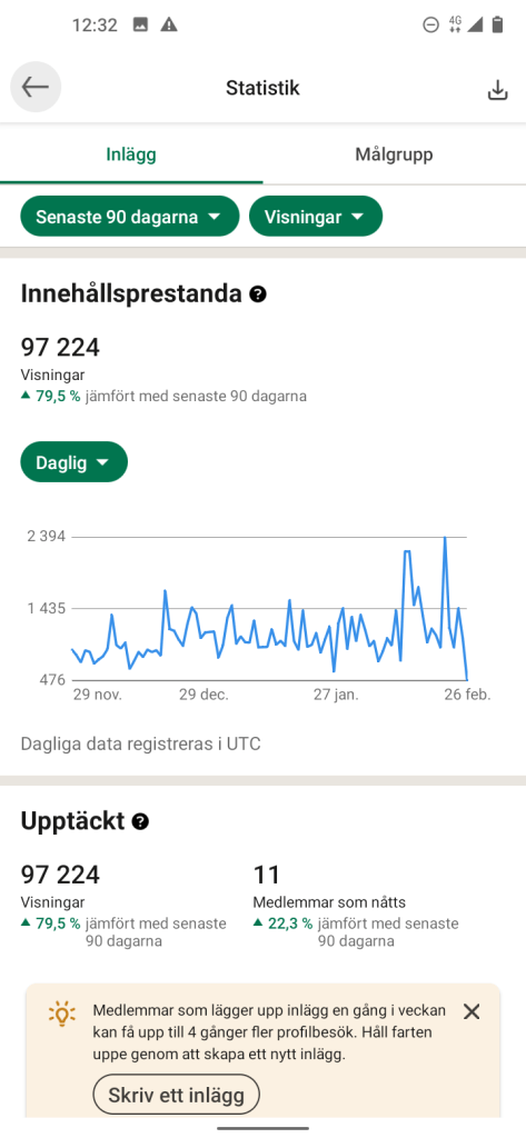 Fantastiskt!! Idag är bilden uppe i så många Visningar 😊 och på det lite Statistik om du nu inte har tittat på mina uppdateringar. Ps, mina 8 inlägg är idag uppe i 96 007 Tusen Visningar ☀️ jag häpnar över det fast å andra sidan så är det skrivet av mig på ett sätt som kanske tilltalar dig med några stycken till 😉. Ja och jag vet nästa inlägg är på gång.