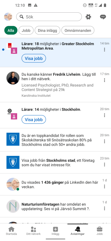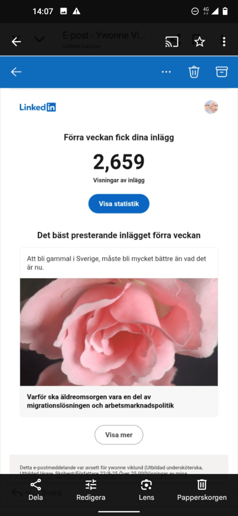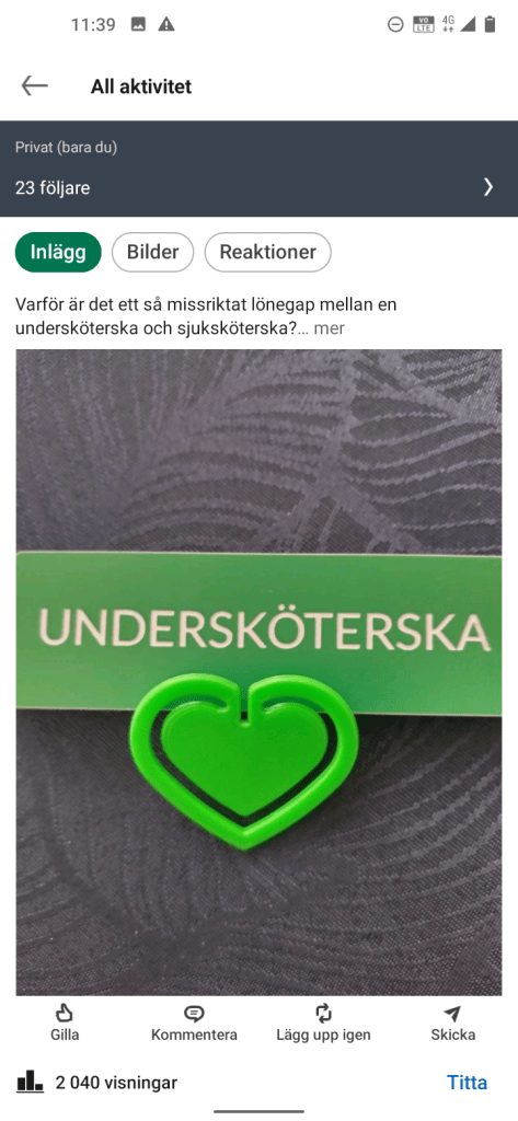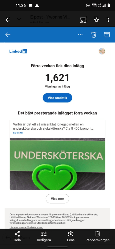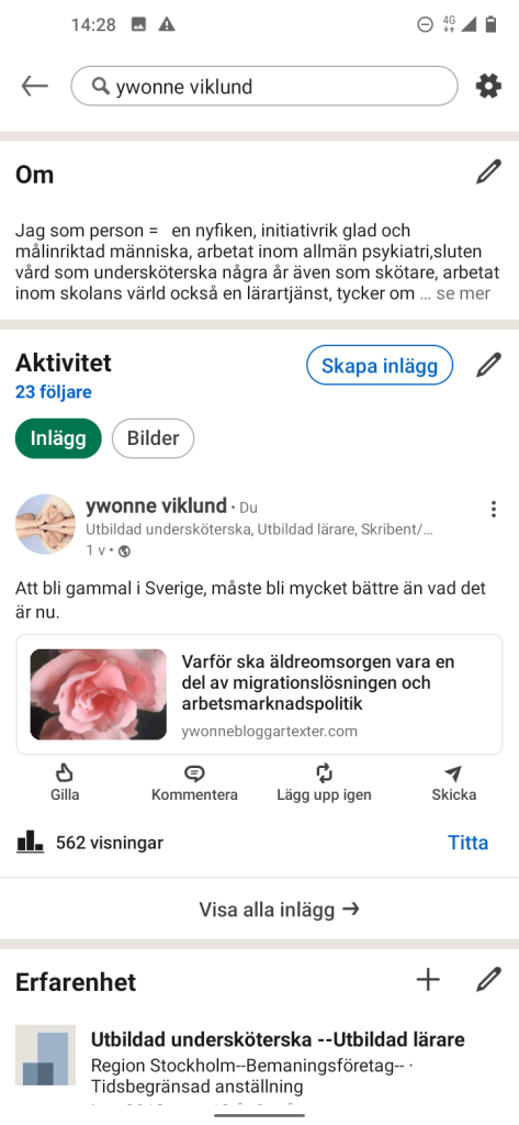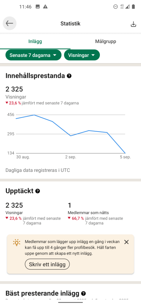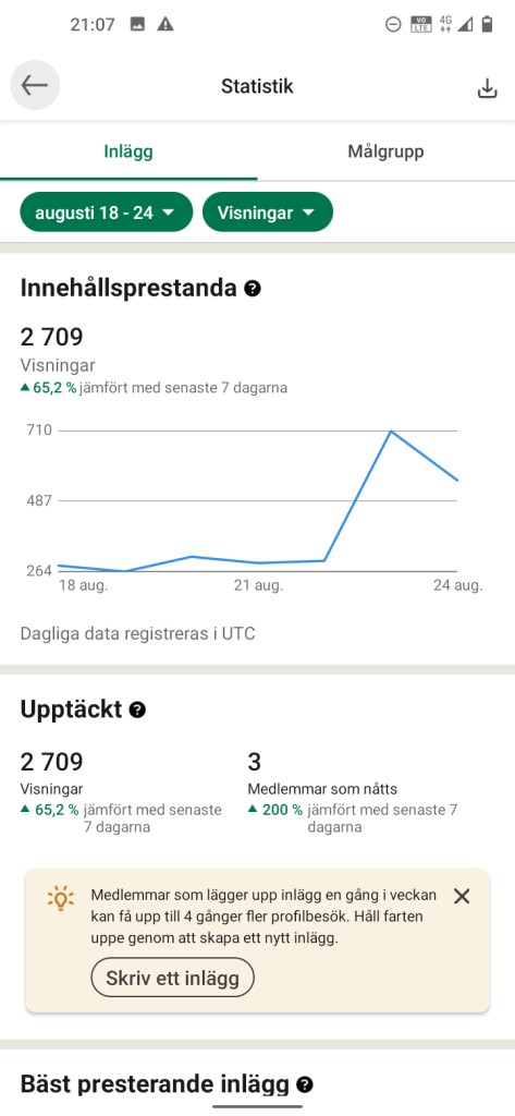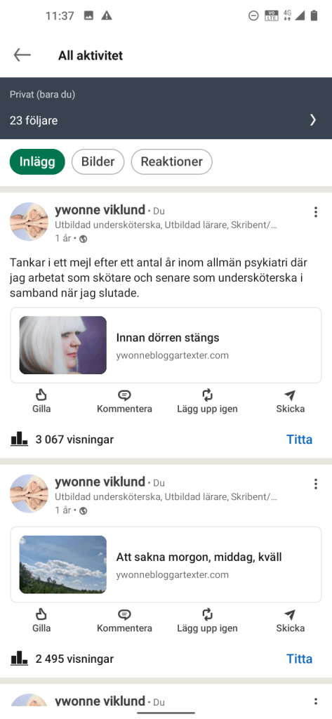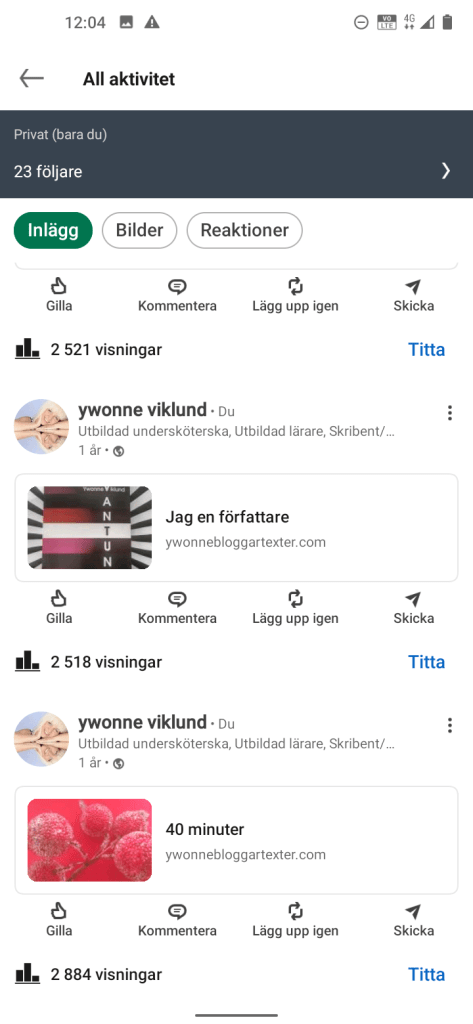 Mina inlägg på LinkedIn som ger relativt många Visningar