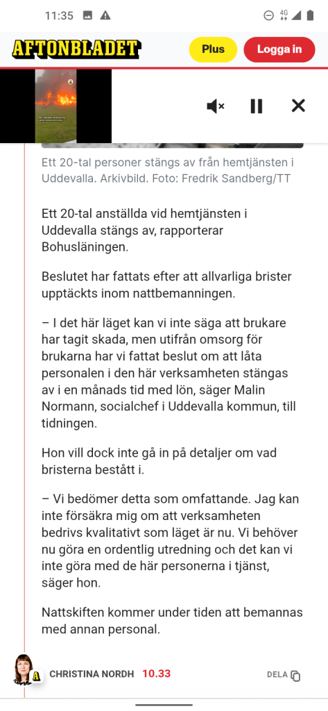 Och flera artiklar som skrivits om hur jävla dåligt det är inom äldreomsorg, i både Expressen och se nedan,hemtjänsten är på tapeten men lika dåligt är det ju inom äldreboenden och särskilda boenden, vill säga till Uddevallas kommun Bra där! Röj upp så att alla inom äldreomsorgen har personal med kvalitet och kan prata svenska språket så att de äldre begriper vad som sägs, och framförallt kan känna sig trygga.