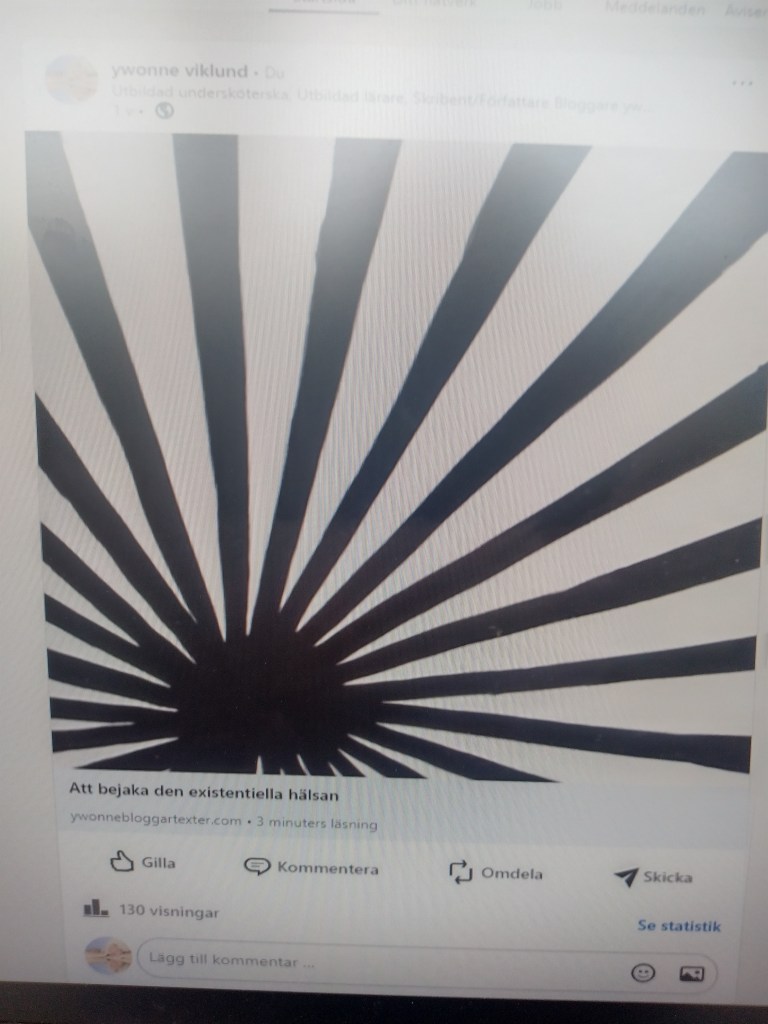Funderar på att ändra fokus från mina texter till att lägga ut bilder med kort text, visst mina texter har övervägande fått höga visningar och en del delningar men inga gilla eller kommentarer, vad beror det på att du som läser mina texter och tycker att de är mycket bra och läsvärda som en sa till mig av en händelse till mig ”det är så djävla bra skrivet” sånt är roligt och motivationshöjande för mig, men ska man vara hemlig så att det inte syns att man gillar texten av mig förutom då i visningar och delningar så kanske det inte är dig jag ska skriva till, utan ändra fokus istället.