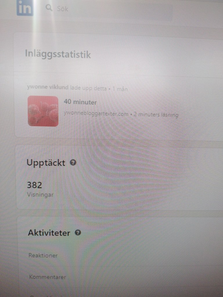 Jag delar inte alla inlägg utan dom finns här men inlägget på Facebook om ”Innan dörren stängs” är uppe i 23 visningar, jag hoppas verkligen att det är några ur psykiatripersonalen som läst och det är jag rätt övertygad om, naturligtvis du också som hittat hit ( lite trist att inte någon har kommenterat av tidigare arbetskamrater kanske de blev kränkta i lätt kränkthetens namn). Vem vet.