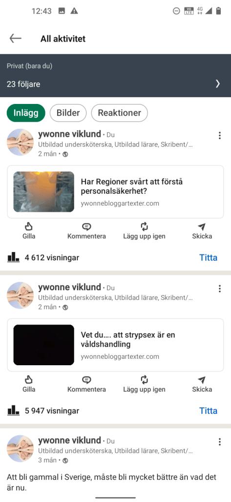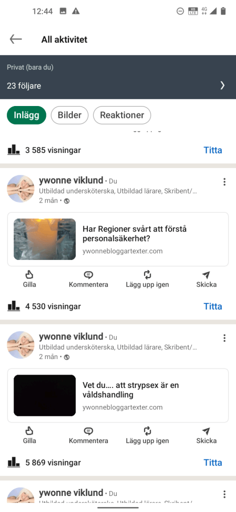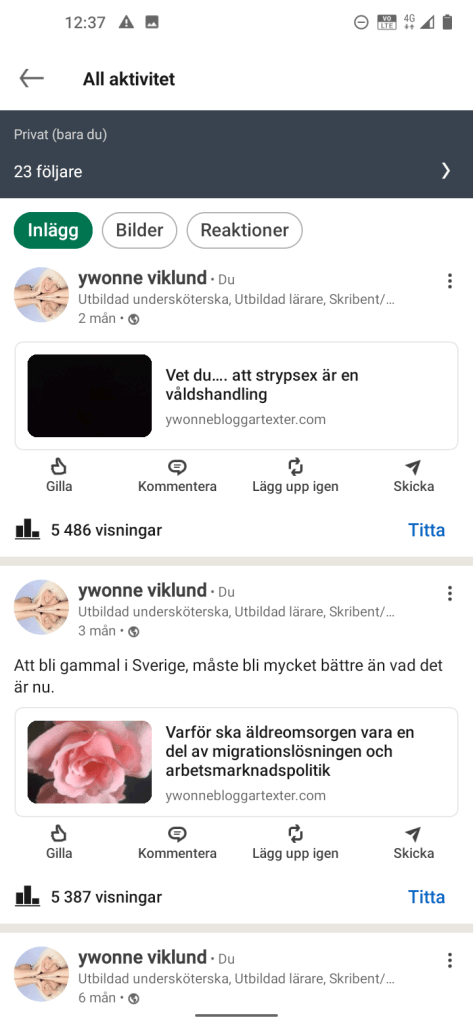 Författarminglet har jag ”lyckats” missa vid två olika tillfällen, häpnadsväckande att missa det två gånger, så nu utgår jag ifrån att ”det var det” inga fler inbjudningar till henne (mig) hon tackar ja och sedan dyker hon inte upp.
