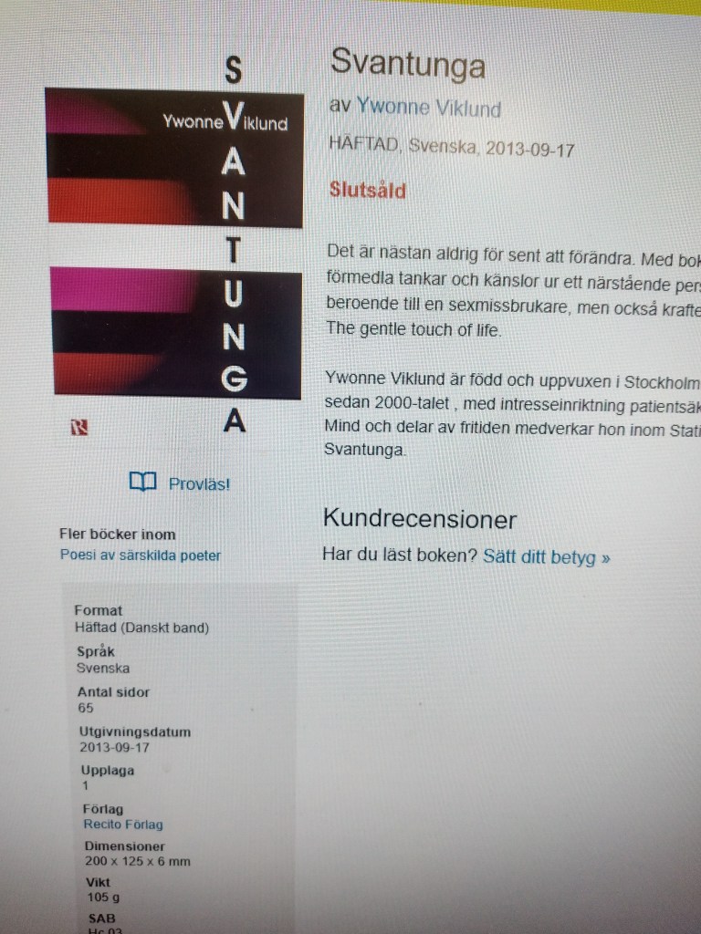 Lyrikboken Svantunga har varit populär som sökning på författar databasen, den som görs av skolor och bibliotek, är man registrerad där så kan man bli inbjuden till skolor/elever eller bibliotek för att prata om sin bok tillsammans med eleverna, kul grej och bra initiativ tänkte jag och skulle registrera mig men möttes av att jag måste betala för att vara med men…. ett feltänk det är ju vi som har totat ihop böckerna som ska ha betalt anser jag, inga andra.